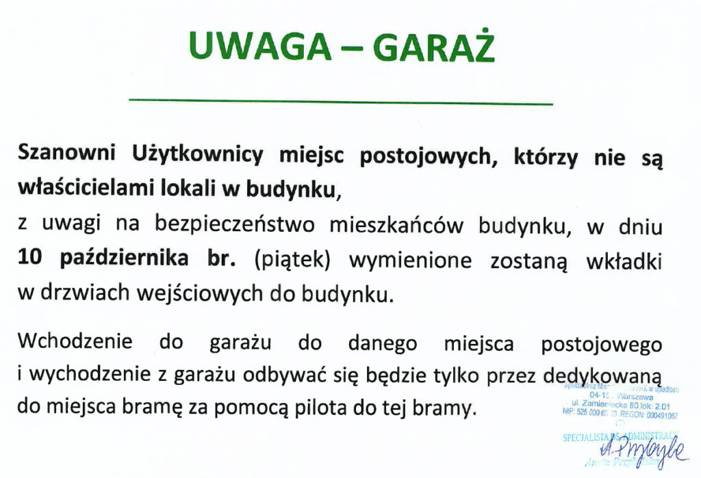 Szanowni Użytkownicy miejsc postojowych, którzy nie są właścicielami lokali w budynku,