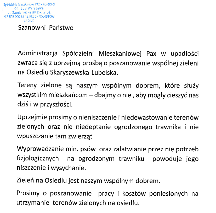 Os. Skaryszewska-Lubelska – wspólna zieleń – informacja przez admin o 19/12/2025 w Informacje, Grudzień 2025 Poprzedni ul. Rzymowskiego 19 – mycie garażu – informacja Następne Życzenia Świąteczne i Noworoczne